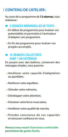 Ces Ateliers sont accueillis par les communes ou les structures locales. Pour les retraités de + de 60 ans.